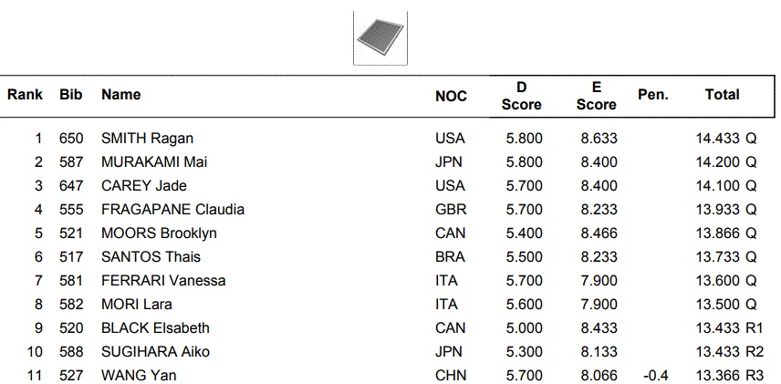 Here are the results at the end of the prelims: