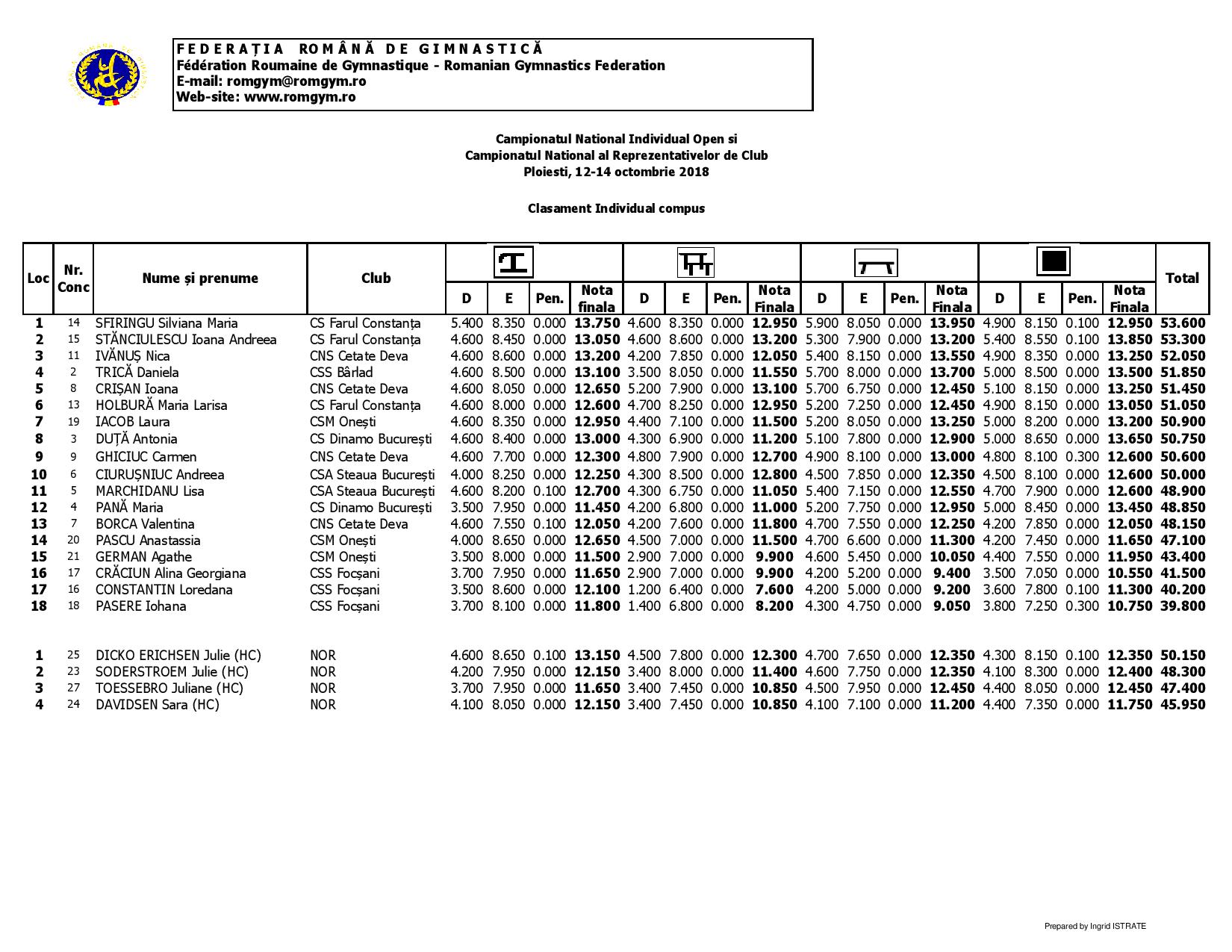 The 2018 Romanian Nationals took place between the 12th and the 14th of October in Ploiesti.