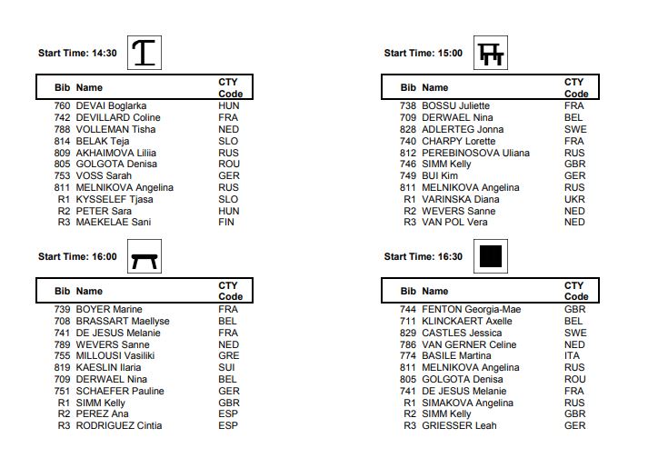2018 Euros senior event finals begin at 2:30pm local time. Here is the start list: